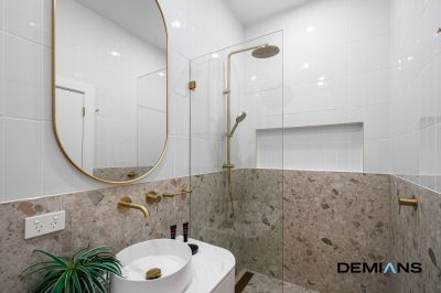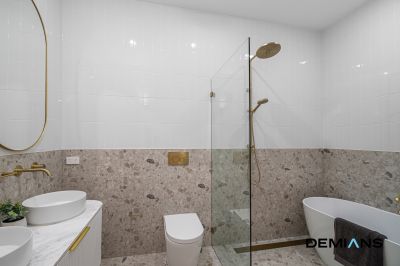 Continue upstairs where all the bedrooms are generously sized with built-ins and share the stunning main bathroom fitted with premium finishing and a chic free-standing bath and shower.