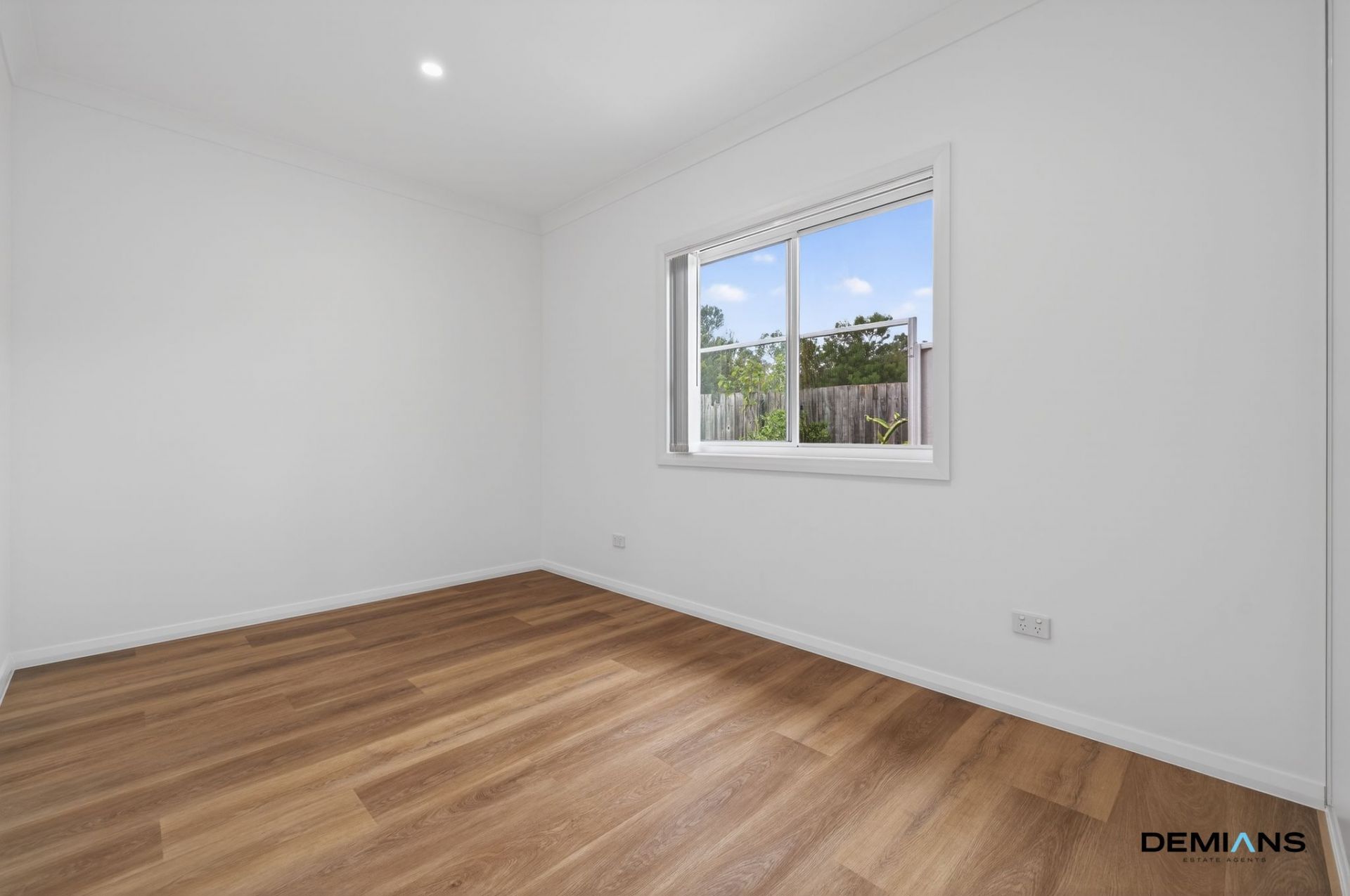 Behind its private entry, the residence reveals bright, welcoming interiors finished in fresh neutral tones and complemented by timber-style flooring throughout. Natural light fills the home, enhancing the sense of space and creating a calm, contemporary atmosphere from the moment you step inside.