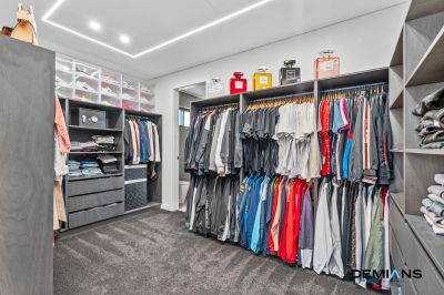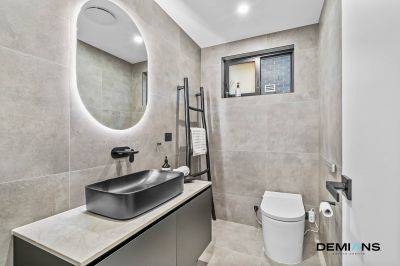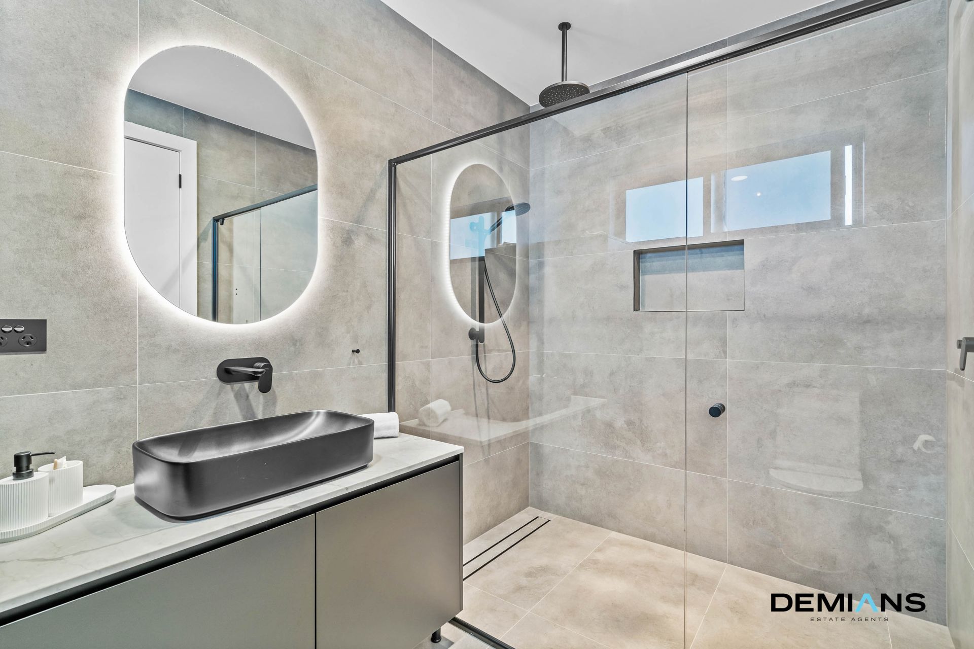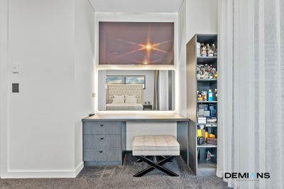 Upstairs, four oversized bedrooms deliver comfort and flexibility, each with custom fitted robes and AirTouch tablet controlled climate zoning via WiFi. The master suite is a private sanctuary with an entertainer’s balcony, walk-in robe, built-in dresser and a lavish ensuite with dual vanity and oversized shower. The main bathroom is equally indulgent, showcasing a freestanding bath, smart toilet with touchless technology, heated towel racks and illuminated touchscreen mirrors, transforming daily routines into spa like experiences.