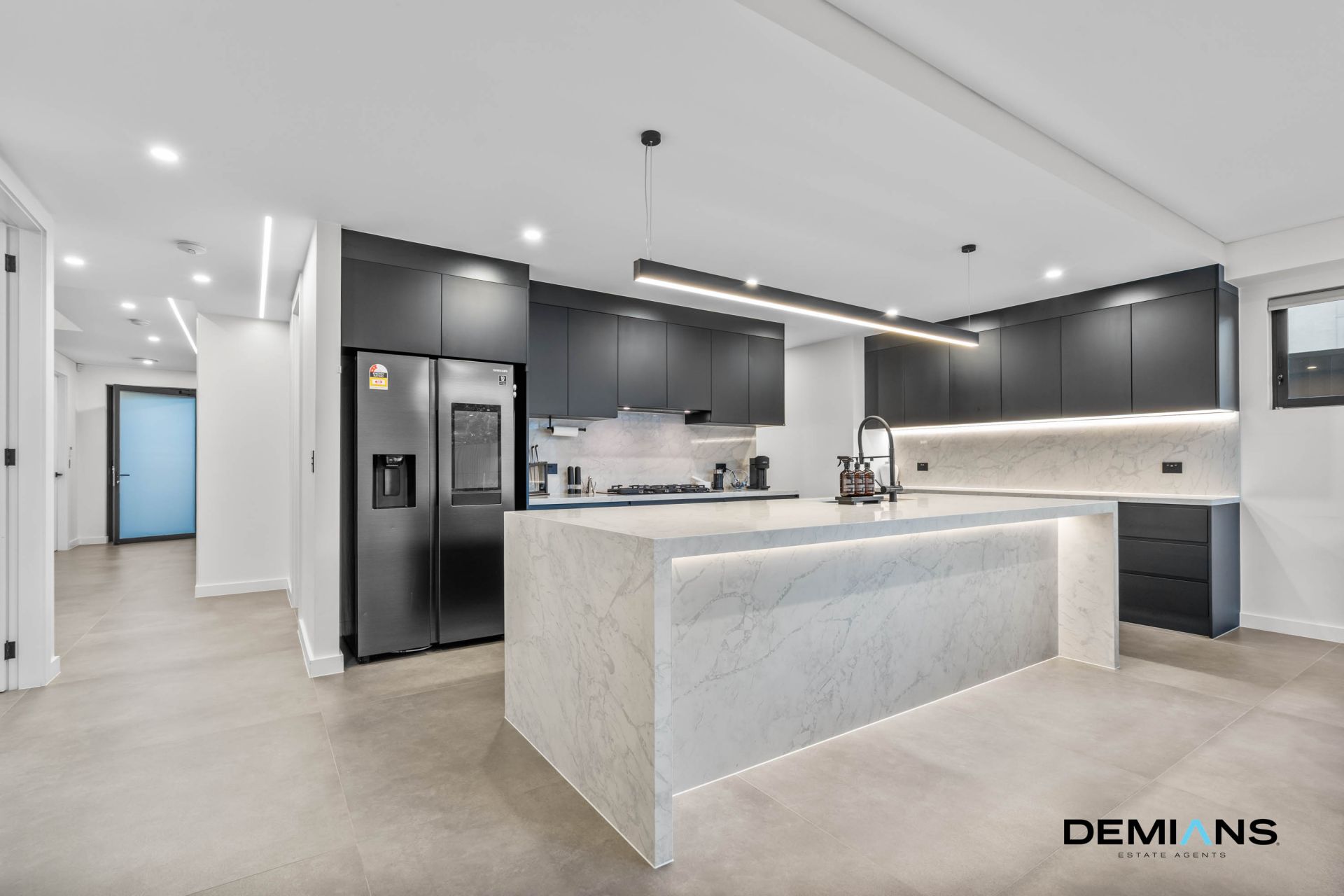 From the outset, the commanding street presence makes a statement. A striking façade is enhanced with LED strip lighting, manicured gardens and masonry fencing with illuminated street signage, all secured by an automated gated entry for the ultimate in privacy and exclusivity.