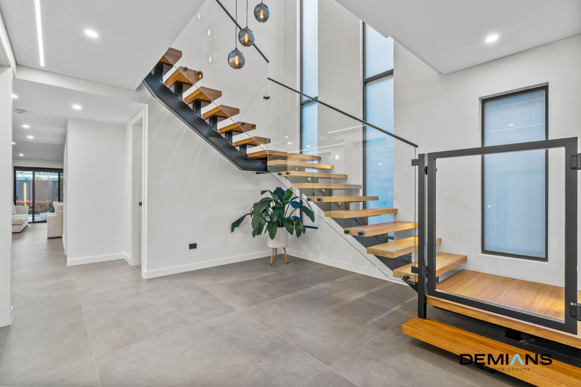 Inside, a sense of scale and flow carries you from front to rear. Bespoke details define the interiors with soaring ceilings, pendant lighting, elegant wainscoting and a floating timber staircase that sets a sophisticated tone. At the front of the home, a private office creates the ideal space to work from home, while a fully tiled double garage with storage offers versatility beyond secure parking.