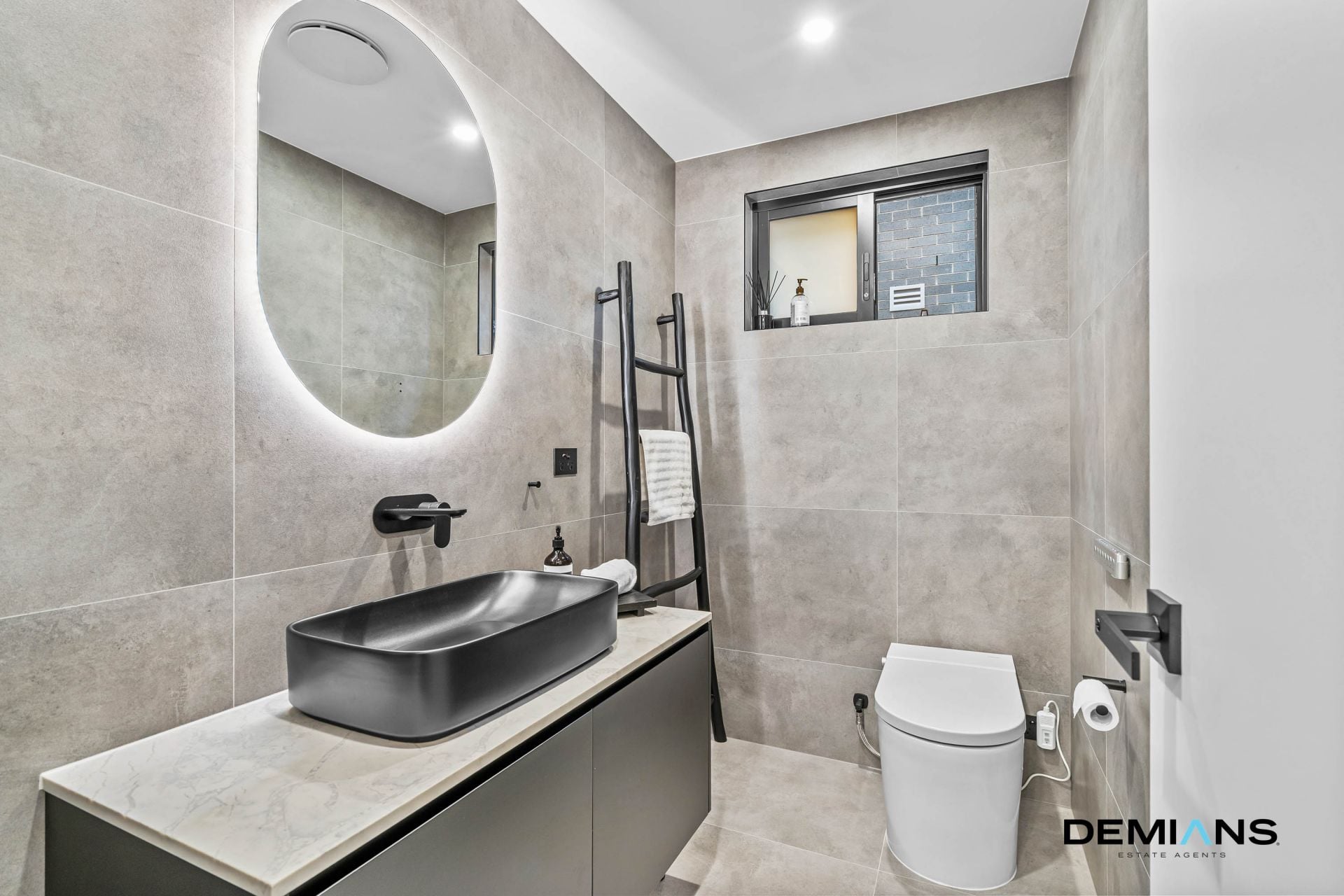 The ground floor also presents a spacious fifth bedroom that can double as a theatre or guest retreat, serviced by a stylish powder room finished with matte black Parisi tapware.