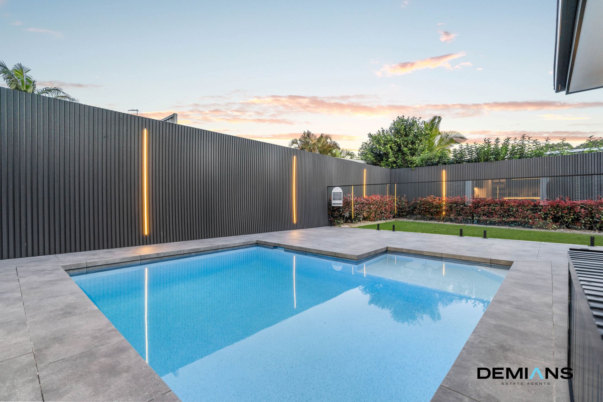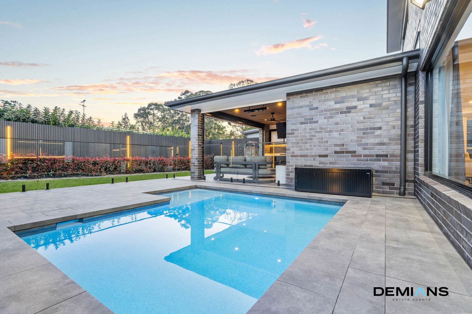 Entertaining is elevated to a new level in the resort style backyard. A covered alfresco with outdoor kitchenette including gas cooktop, sink and bar fridge is complemented by ceiling fans, automated blinds, an outdoor heater, integrated Bose and Sonos speaker system and a wall mounted TV, all designed for year round enjoyment. Beyond, the sparkling in ground pool with outdoor shower and the landscaped yard with LED lit fencing provide a spectacular backdrop for family living and celebrations.