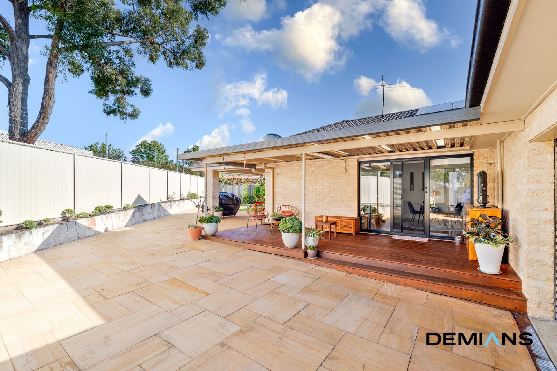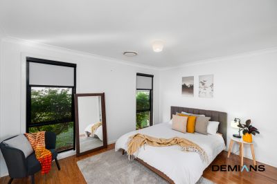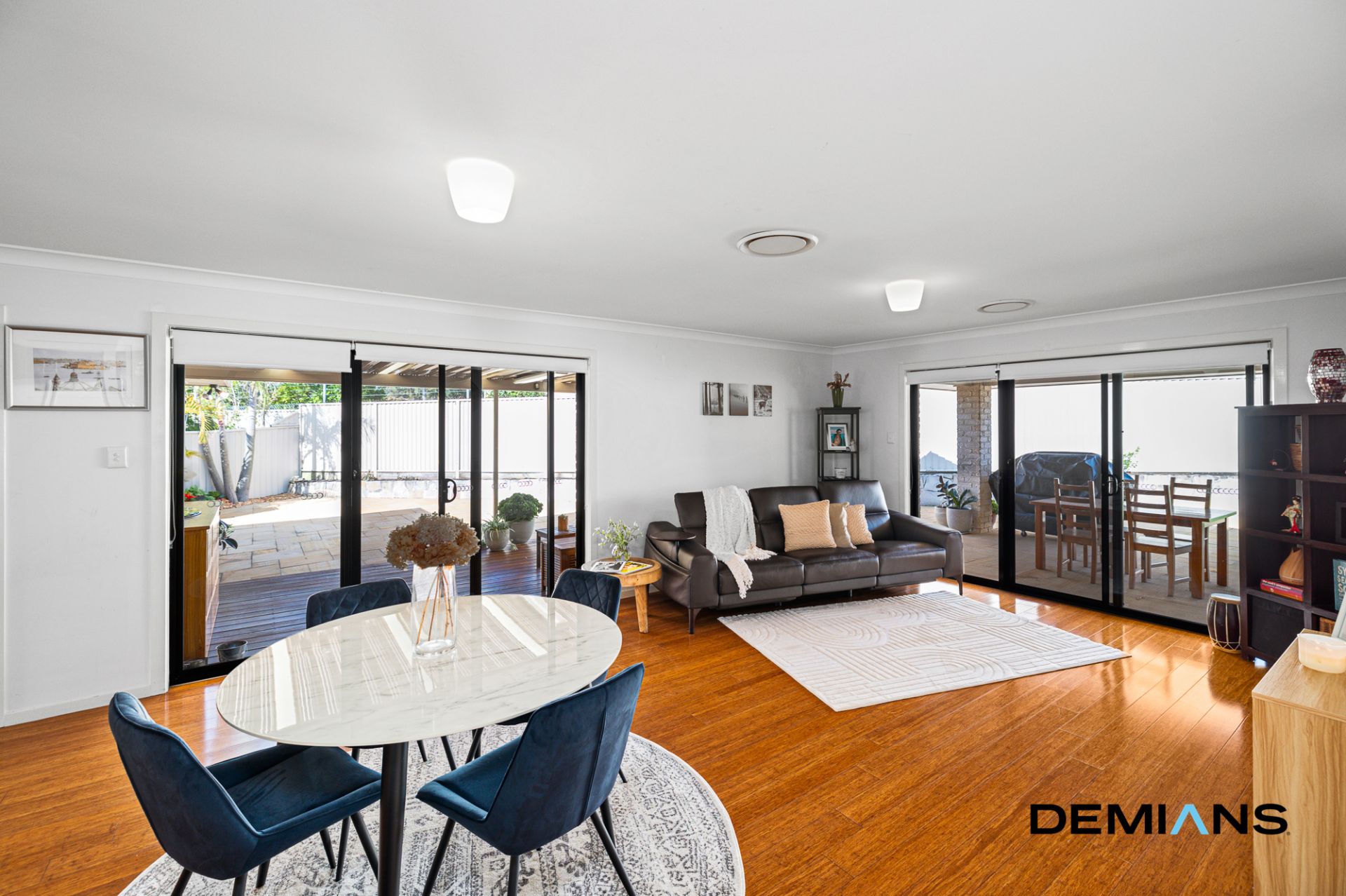 Outside, the beautifully landscaped backyard is an entertainer's dream, featuring two undercover alfresco areas, one with timber decking, and a generous sandstone paved space, all framed by lush, manicured lawns and garden beds.