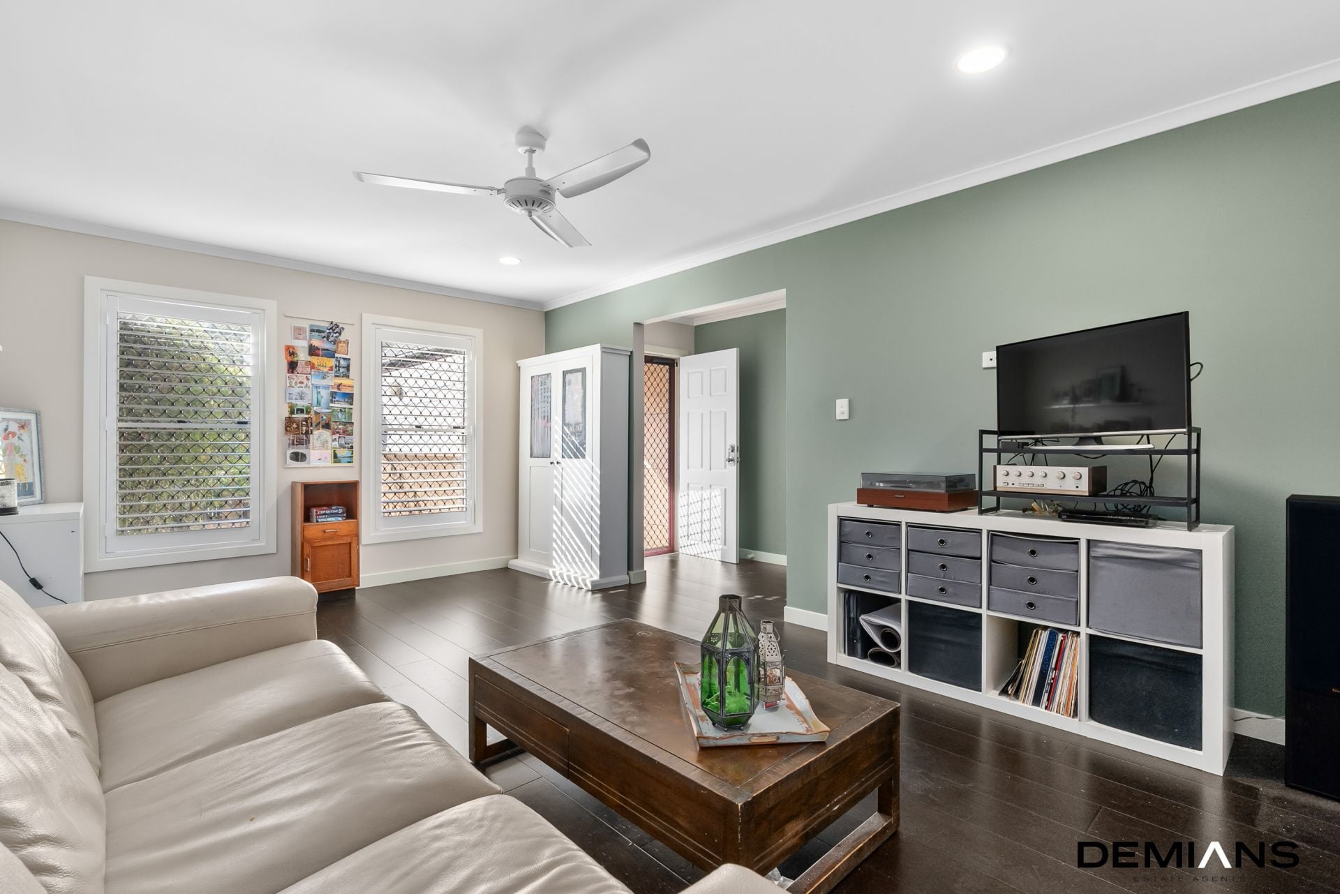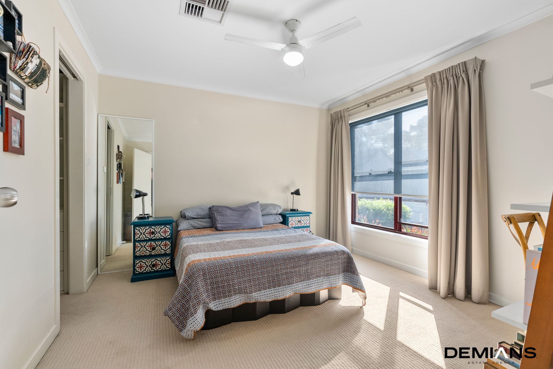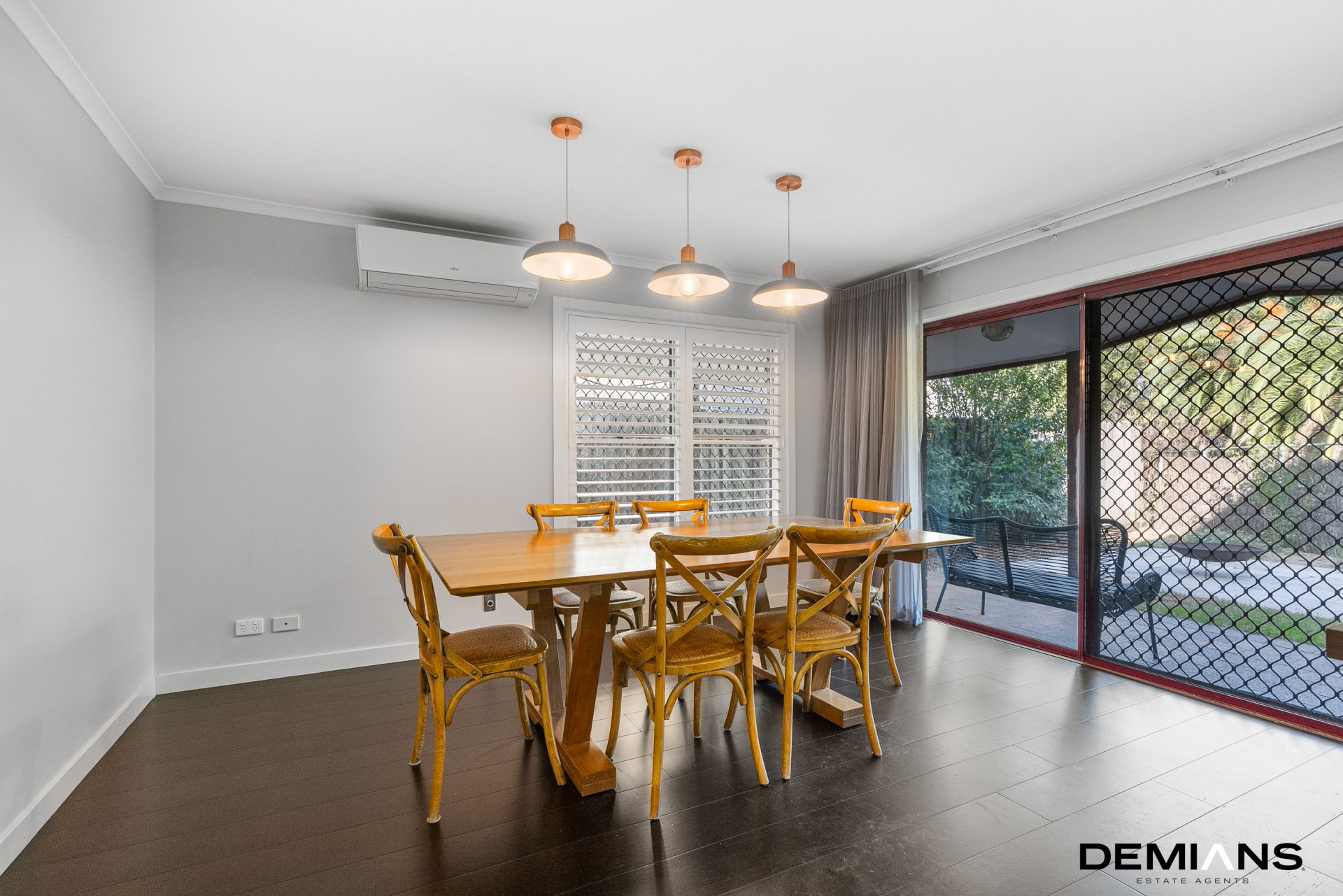The living and dining areas flow effortlessly, creating an inviting atmosphere for both relaxation and entertainment. The spilt system aircon and ceiling fans enhance comfort, while a conveniently located powder room adds to the practicality of the downstairs area.