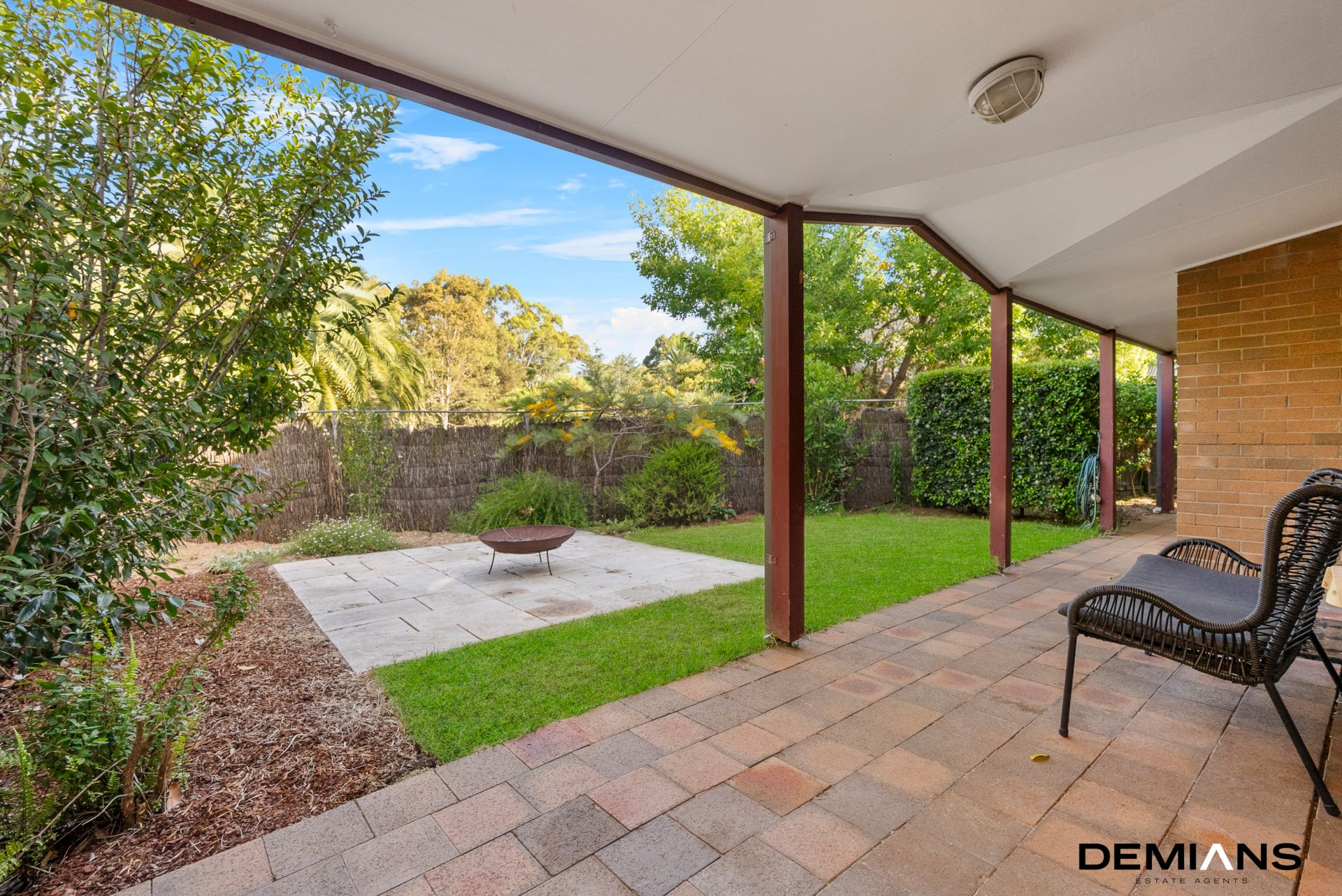The property also offers a private backyard that serves as an ideal reading nook, overlooking serene parklands. A wrap-around pergola and a dedicated fire pit area enhance the outdoor living experience, providing perfect settings for relaxation and entertainment.