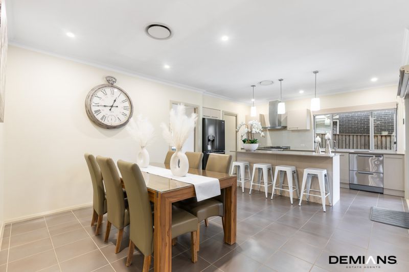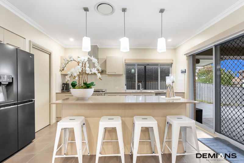 Designed for the great entertainer, the large kitchen has been tastefully designed to home a show-stopping central island bench with breakfast bar, tiled splashbacks, butler's pantry and integrated stainless steel appliances including a gas cooktop and oven.