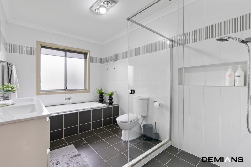 The bedrooms share the main family bathroom which is finished in floor-to-ceiling tiles, separate oversized shower and bath plus twin vanity.