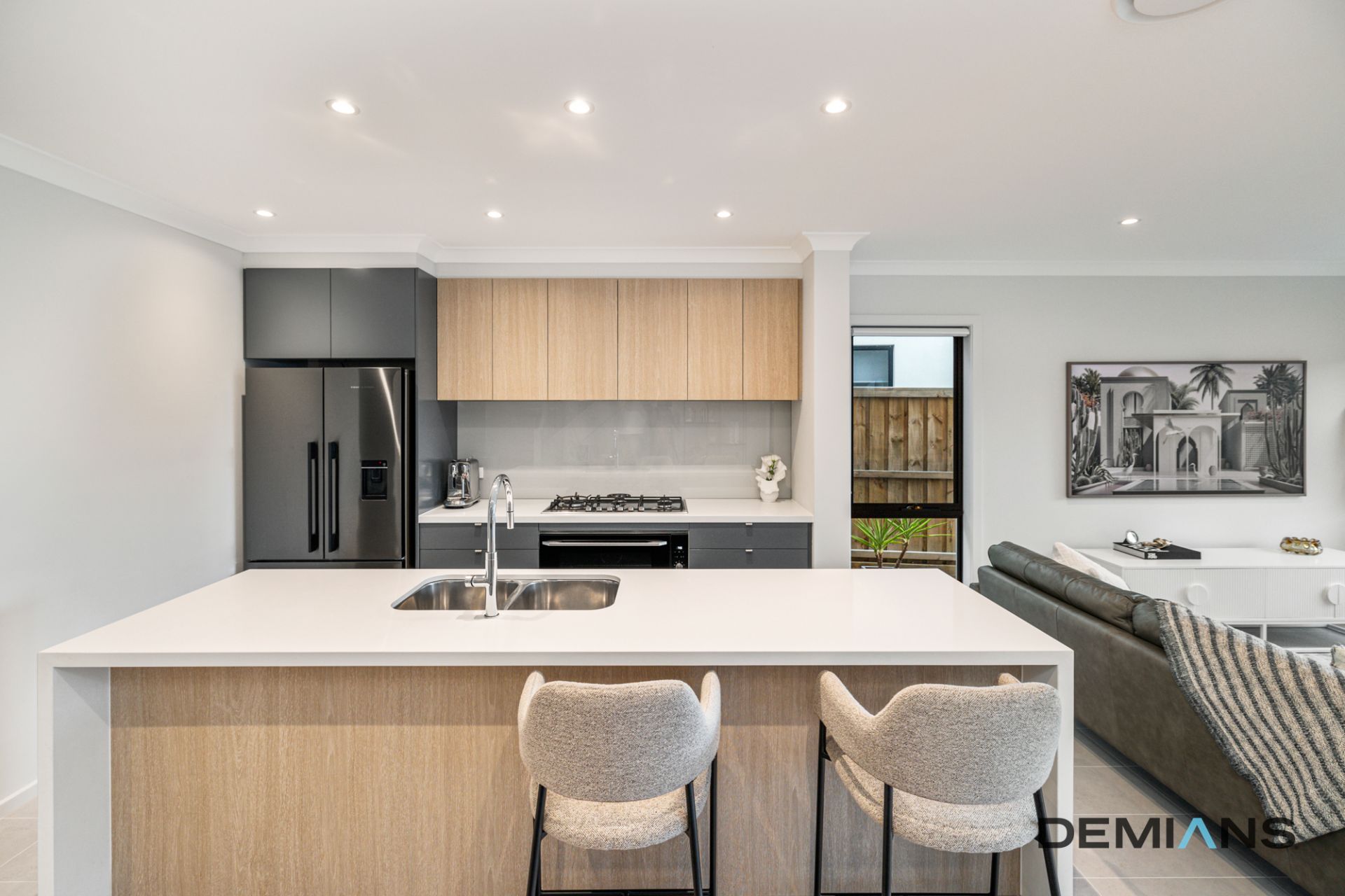 At the heart of the home is the stunning gas kitchen, designed for both style and function. It features a massive stone island bench, premium Delonghi stainless-steel appliances, a built-in pantry, and soft-close aluminum drawers. Overlooking the dining and living area, it seamlessly connects to the outdoor alfresco, where a paved and grassed backyard, complemented by wide side access, provides a fantastic space for entertaining and play.