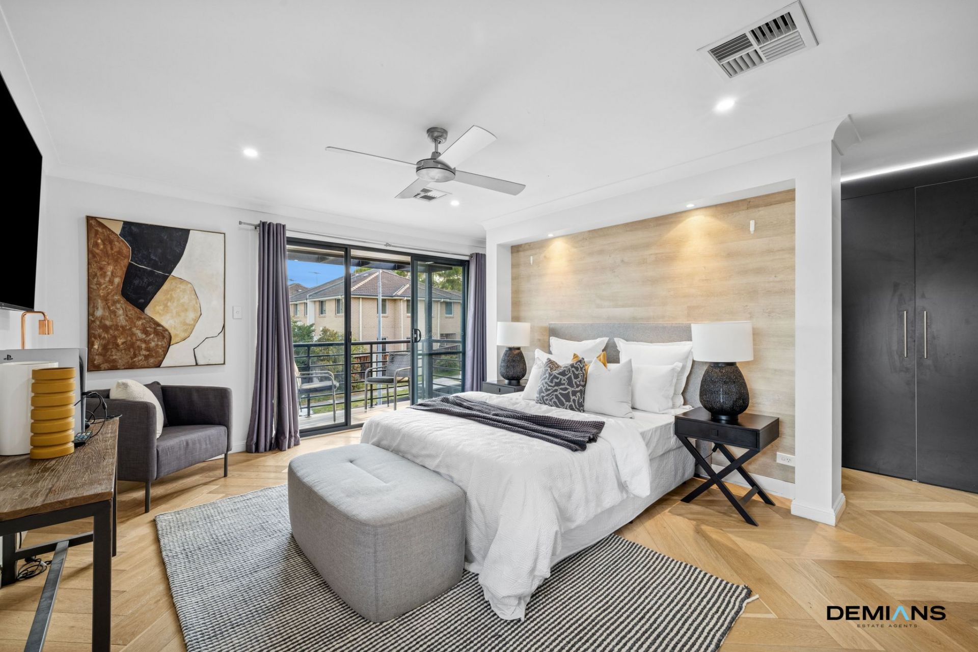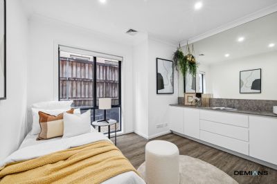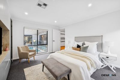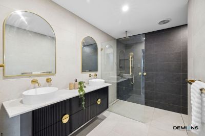 The master suite is a true retreat, complete with a private balcony, a walk-in robe and a wraparound robe fitted with custom cabinetry, along with a beautifully appointed ensuite featuring dual vanities and premium finishes.