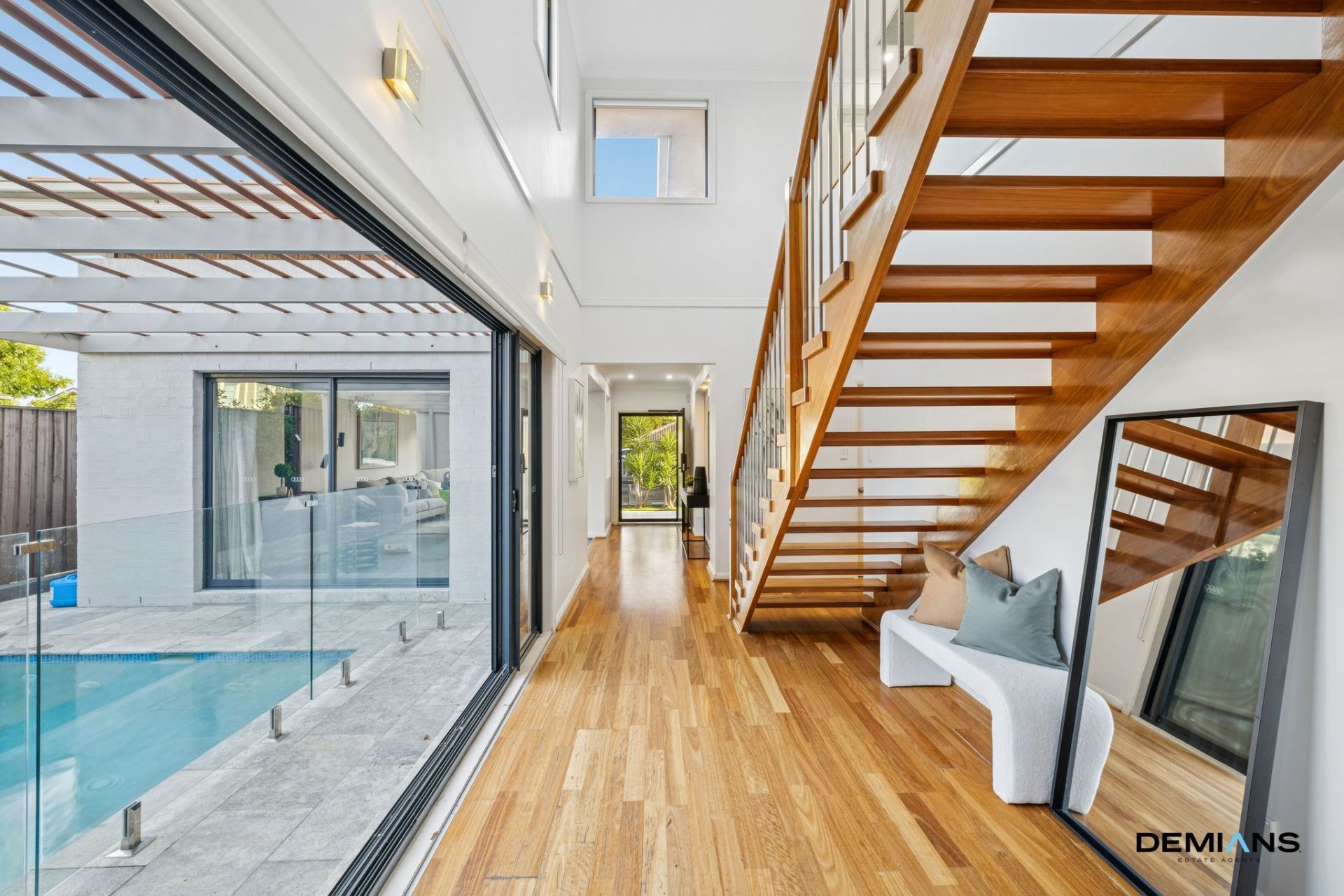Additional features include ducted air conditioning, feature lighting, glass balustrades, a statement open-tread timber staircase and private side access.