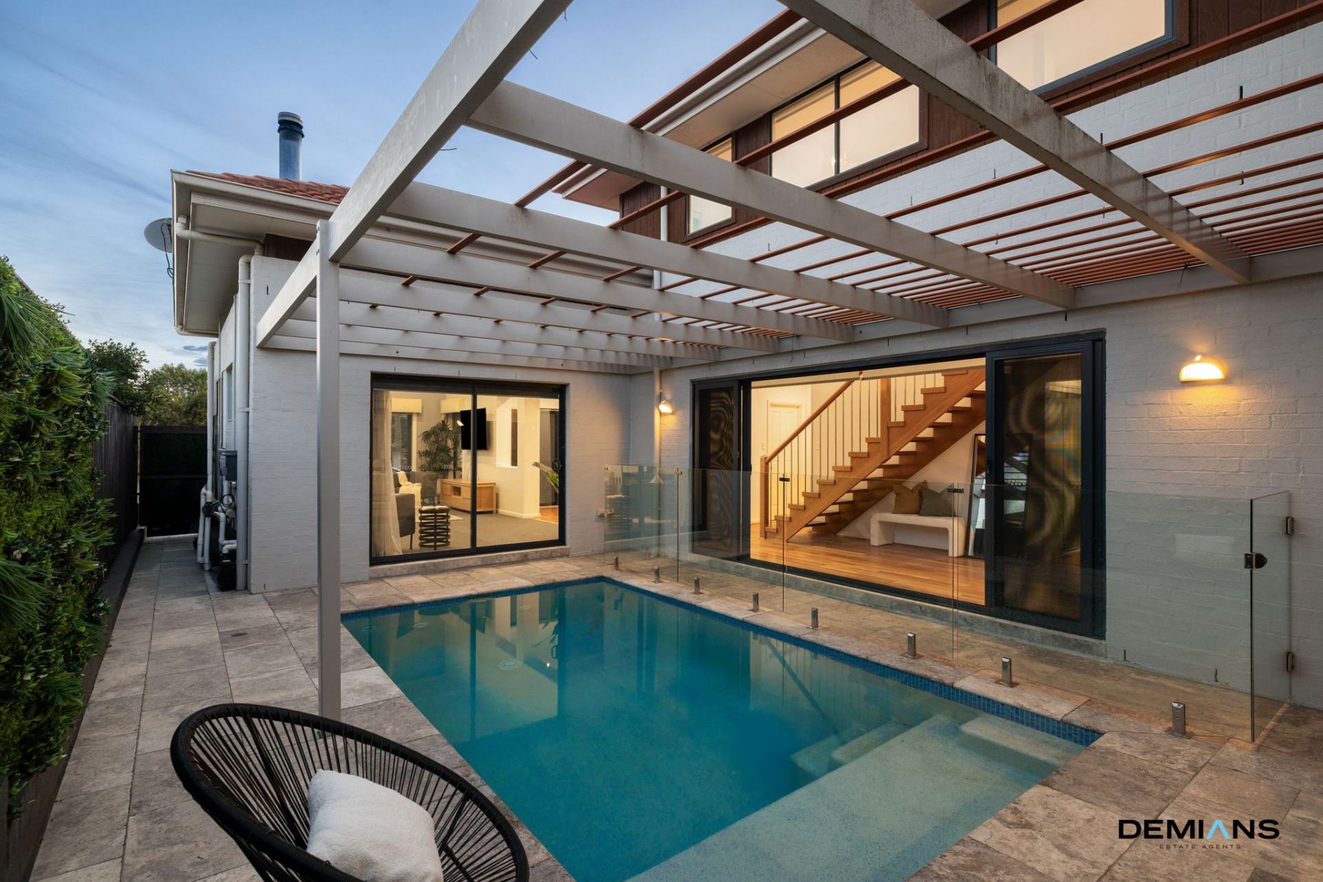 Outdoors, everyday living takes on a resort feel. The pool sits at the centre of the home, framed by silver travertine, glass fencing and a bold pergola, delivering a private, sunlit escape visible from both living zones. It's the ultimate setting for hosting friends and creating unforgettable summer pool days.