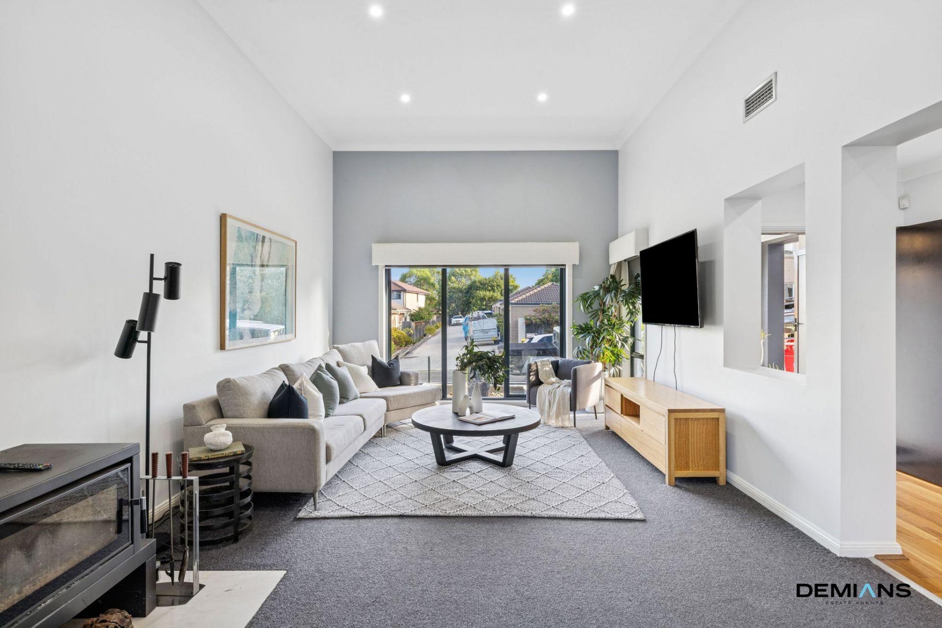 The downstairs front living area is further elevated by a feature fireplace, creating a warm and inviting atmosphere ideal for both everyday living and entertaining.