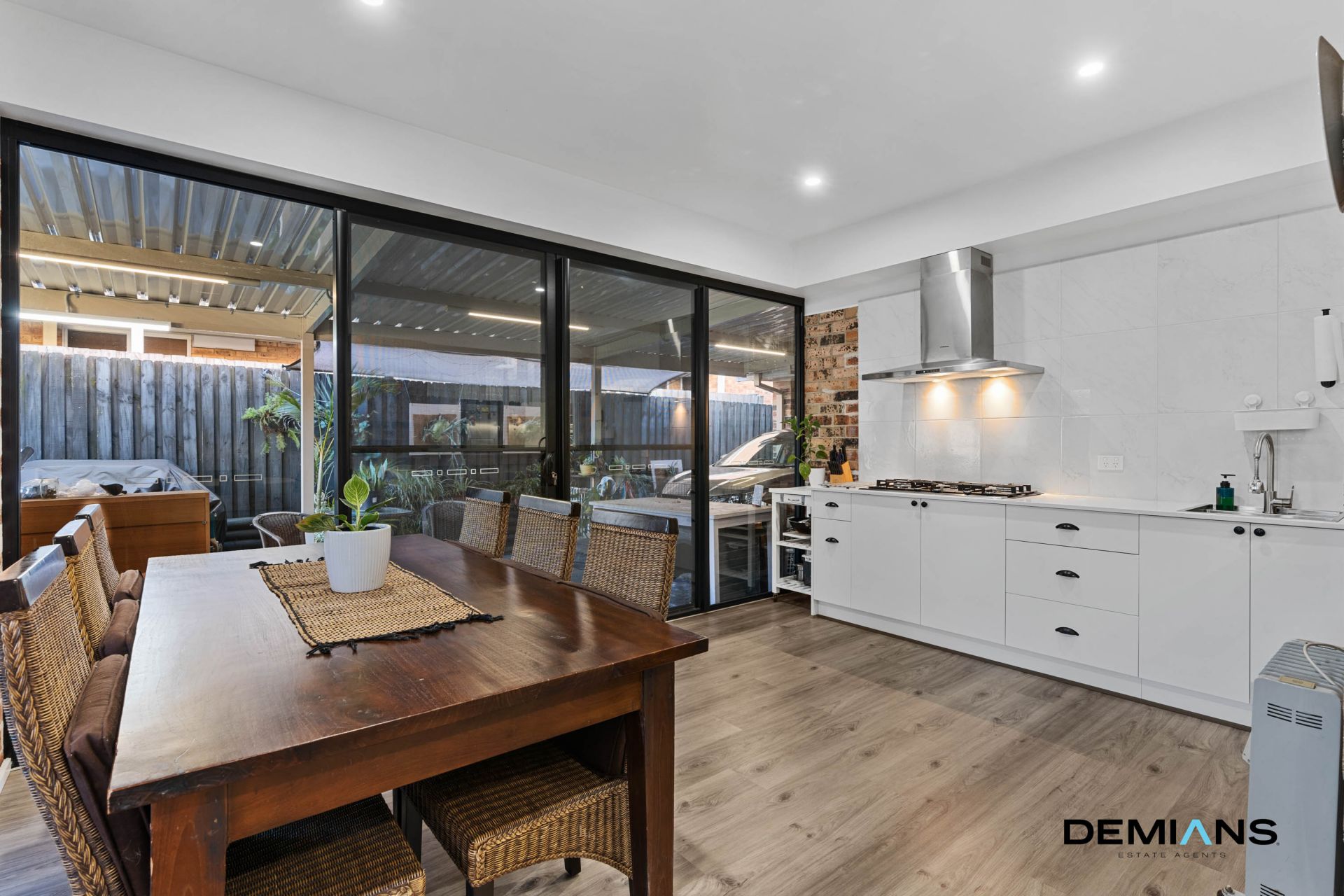 At the heart of the home, the sleek modern kitchen showcases stone benchtops, gas cooktop, tiled splashback, integrated dishwasher and an extended breakfast bar - the perfect hub for casual meals and conversation.