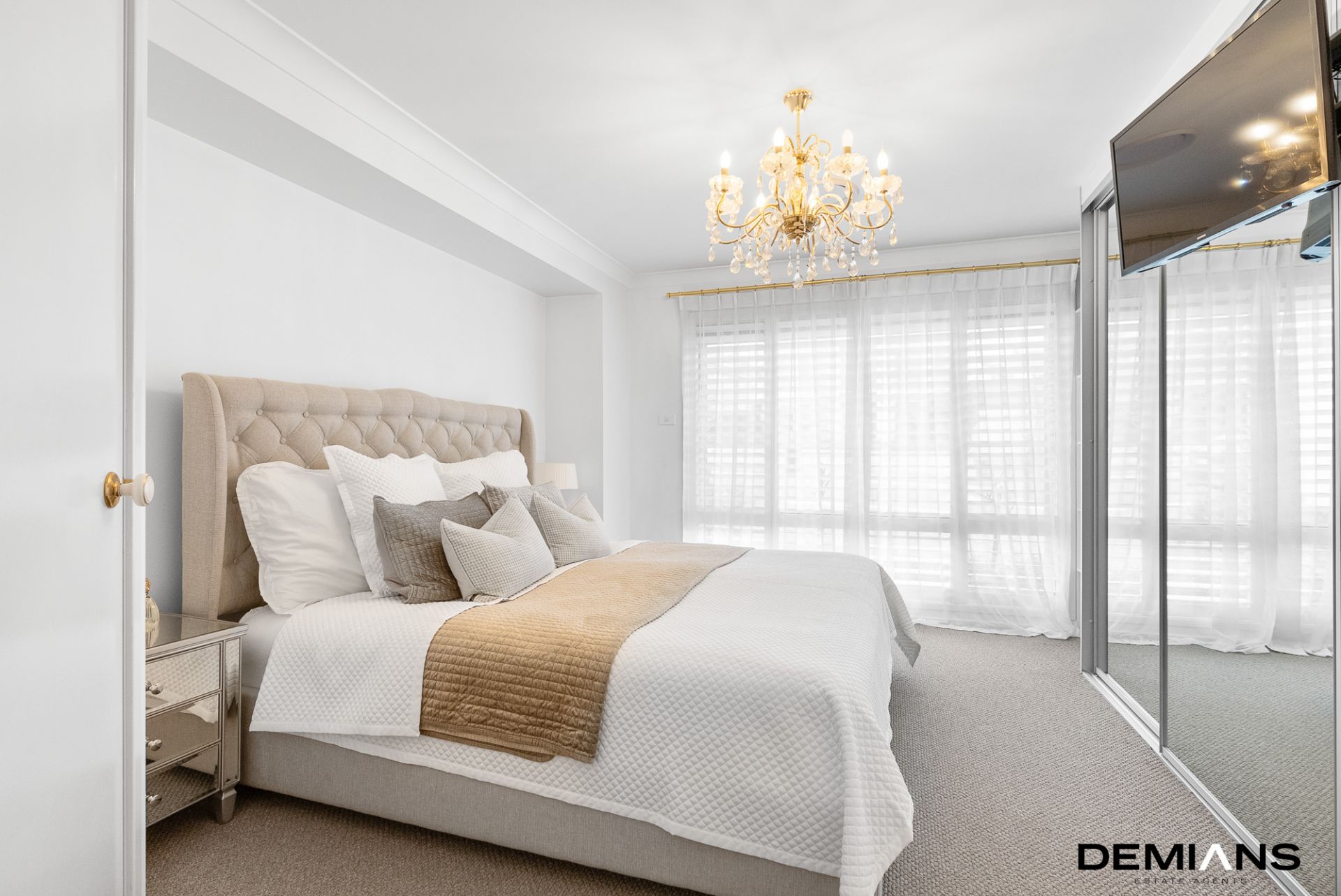The luxurious accommodation includes four spacious bedrooms, each thoughtfully designed with mirrored built-in robes.