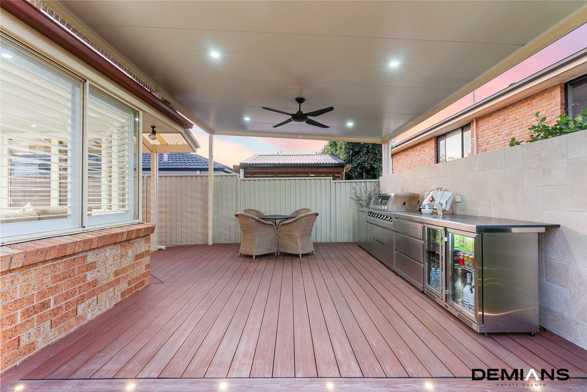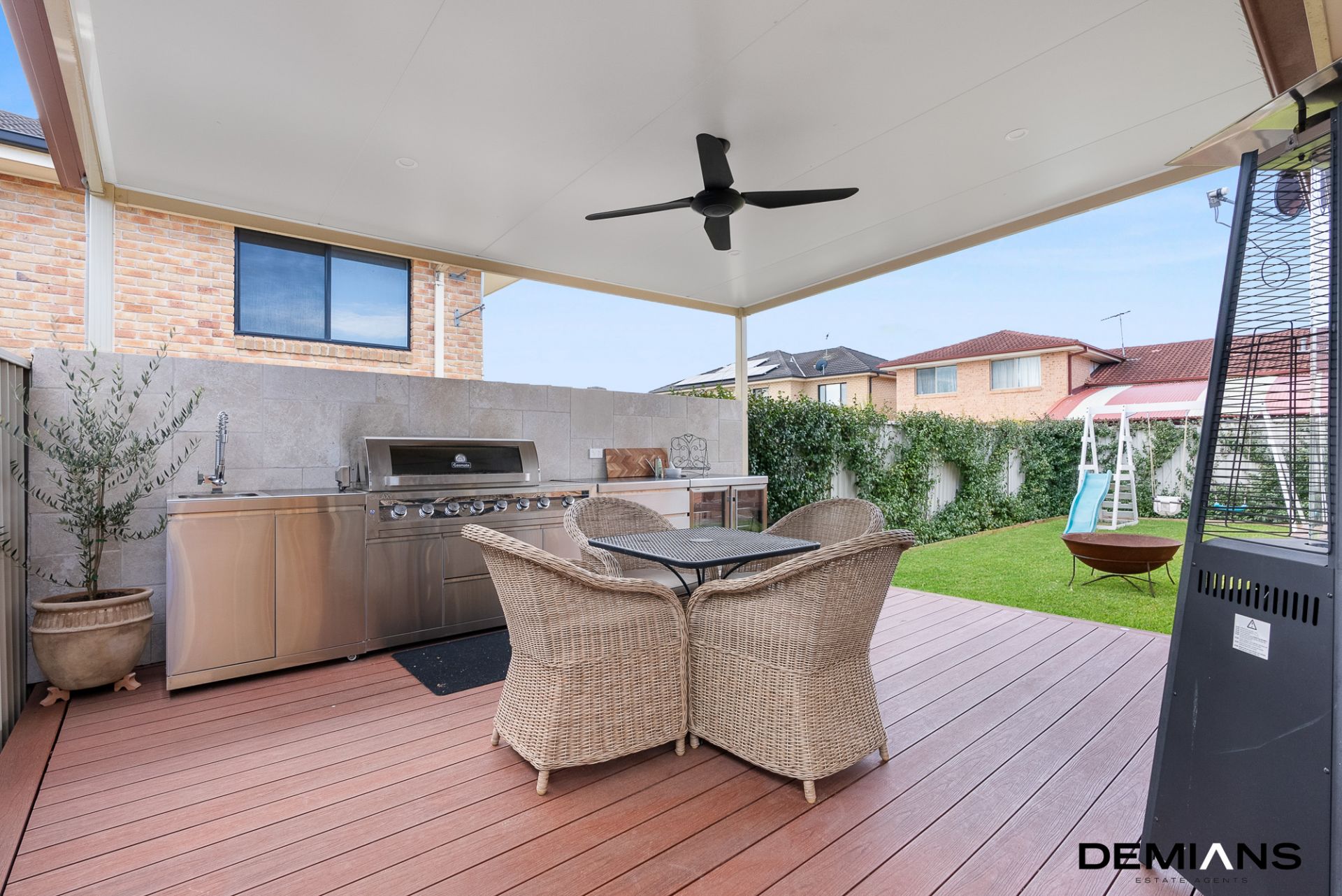 When it's time to entertain, the outdoor space truly shines. A covered pergola and alfresco area, complete with a built-in stainless steel BBQ, sink, and ceiling fan, make it the ultimate spot for weekend barbecues and summer evenings.